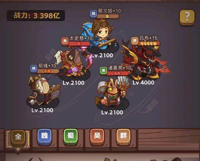 咸鱼之王77-10爬塔阵容一:吕布+诸葛亮+蔡文姬+太史慈+荀彧;