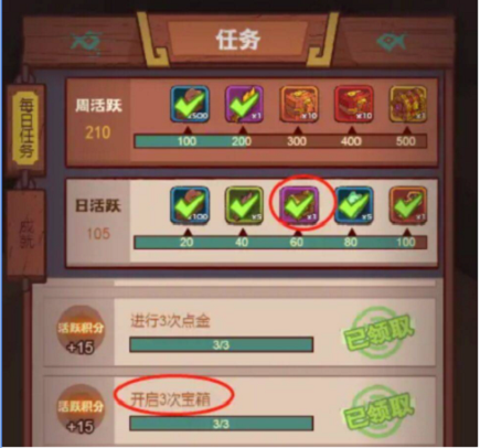 2.每日任务获得。每日任务开启3次宝箱,可以获得15活跃分,日活跃分达到60又会送你一个青铜宝箱,相当于白得的。