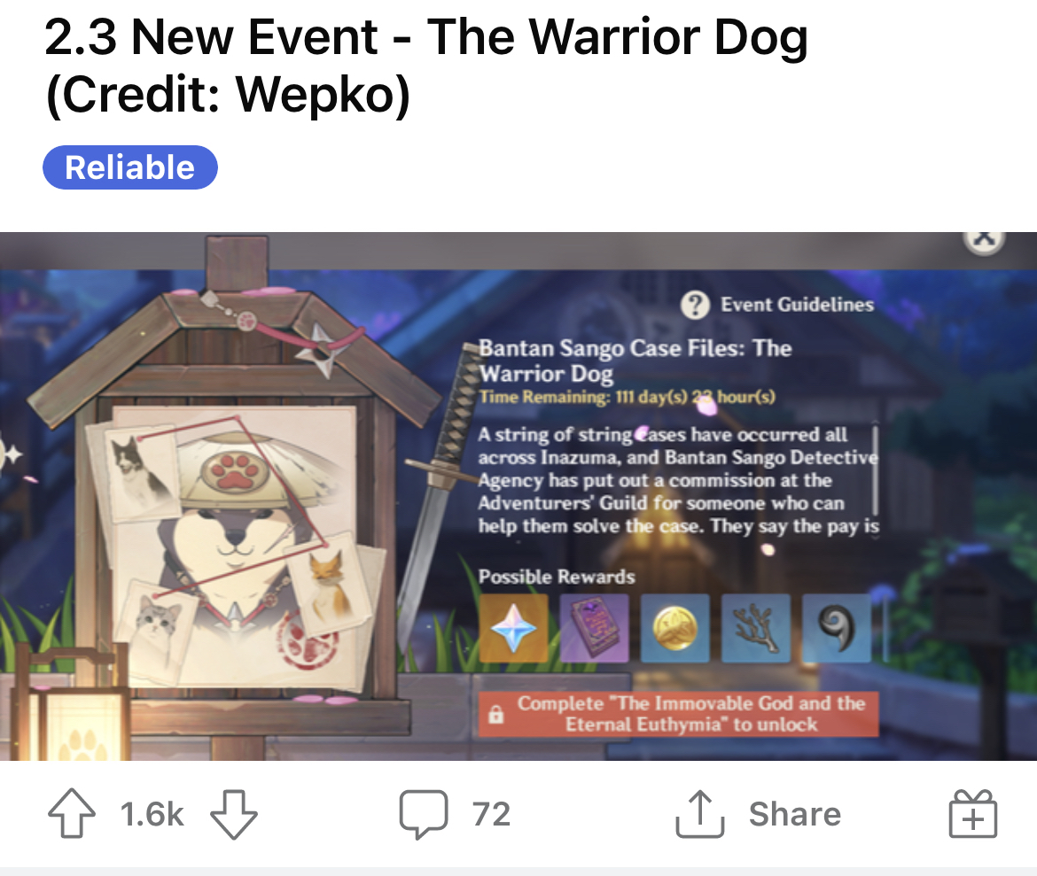 (2)内鬼不仅爆料2.3会推出稻妻新成男角色荒泷一斗,还把四套新圣遗物信息放出。