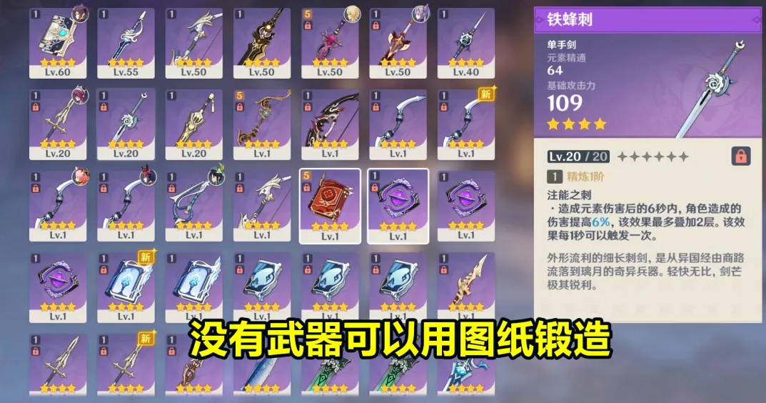 零氪玩家一般是2个版本吃一次保底,所以对于零氪玩家来说,武器是很麻烦的,如果实在没有武器可以去蒙德、璃月、稻妻用图纸锻造一把合适的武器。