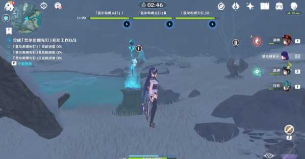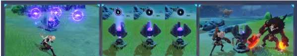 使用雷元素攻击「普尔希娜光钉」激活它,并为它提供充能,光钉的能量条越低充能越慢,充能过程中会有怪物会根据光钉上的顺序来攻击,被攻击的光钉会掉耐久度,耐久度掉完了,挑战失败。