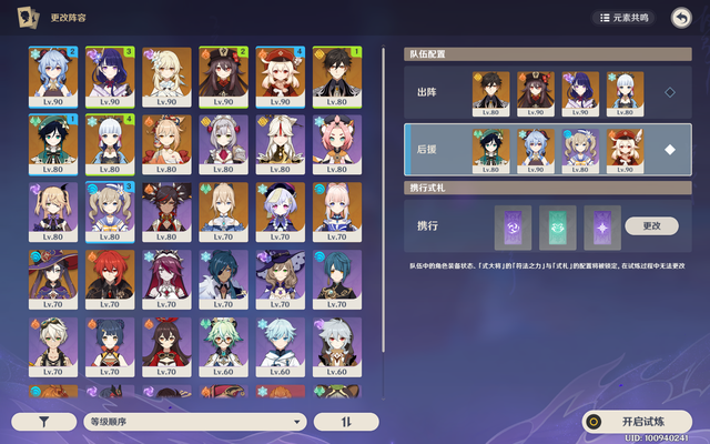 队伍配置:在开启试炼之前,可以配置8个角色,处于出阵的4个也就是上场的人员了,而后援的则可以在试炼中的疗愈兵机处进行调整,这边需要注意的是后续有些成就最多只能配置6个角色,如果想要1把过的配置前可以先确定下相关成就。
