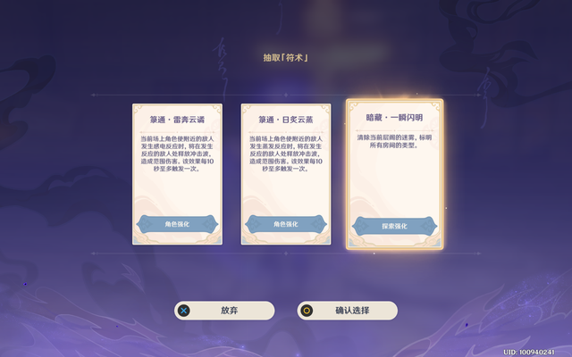 符术:符术分为探索强化与角色强化,同时也有品质区分,按照蓝-紫-橙的顺序依次递增。在初始房间基本都能抽到解除迷雾的符术,建议优先选择,这个可以先看到各个房间的作用。