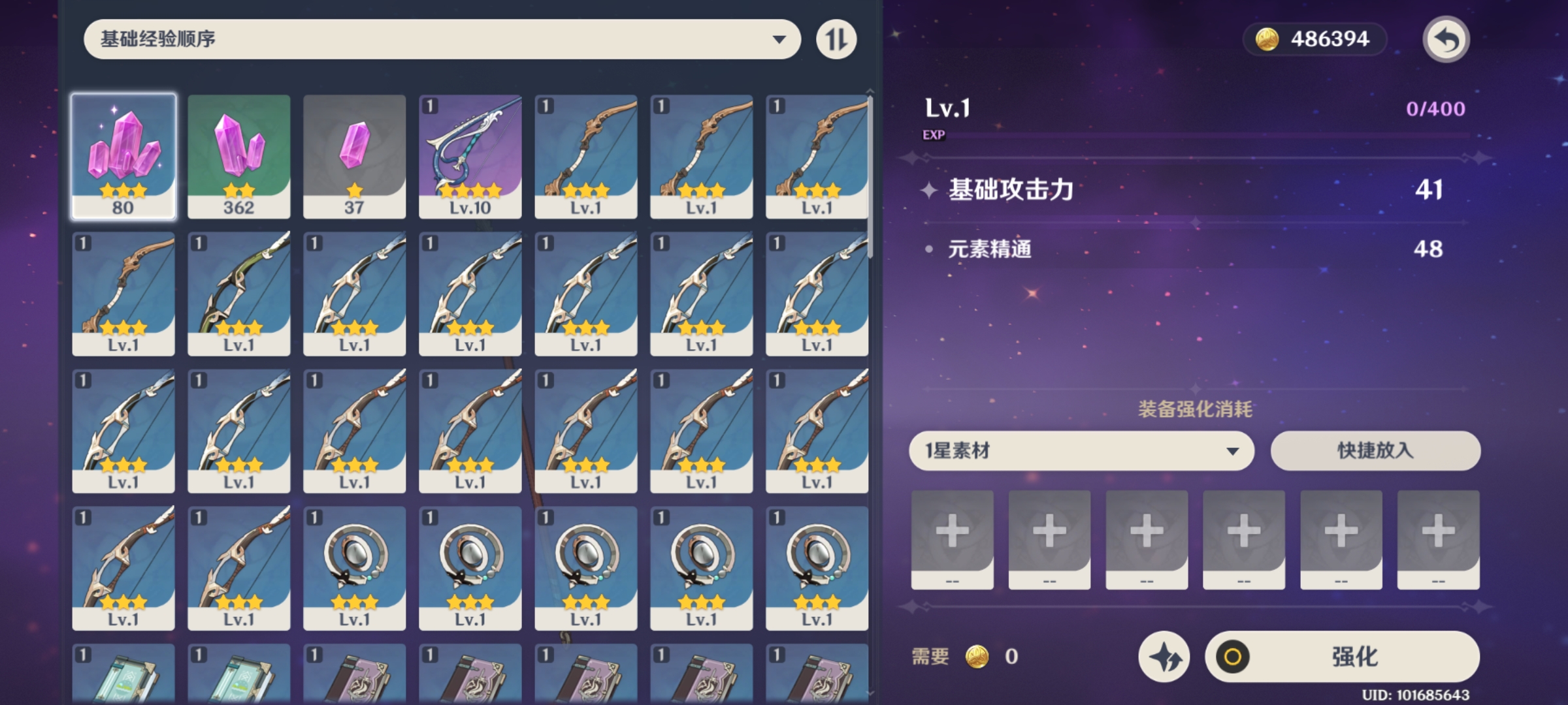 原神手游中,玩家可以用精锻用矿石和其他武器作为素材给需要的武器进行升级。