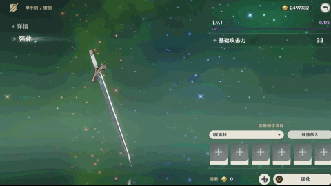 4.点击放入指定消耗道具并点击“强化”按钮,即可完成武器强化升级。