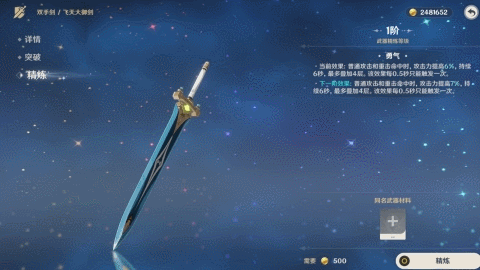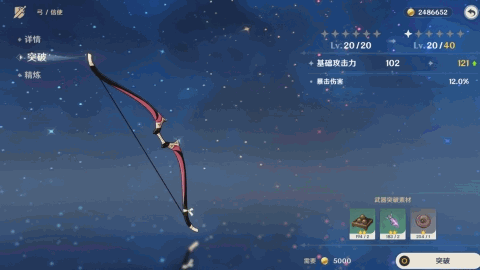 当武器达到一定等级时,可通过武器突破来提高武器等级上限和武器属性。同时,旅行者需要达到一定冒险等阶,才可进行武器突破操作。