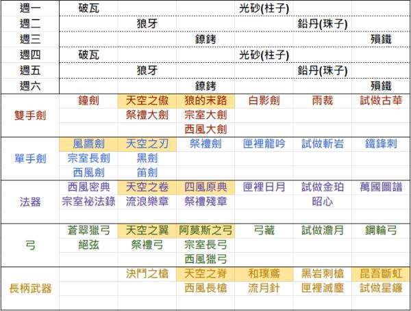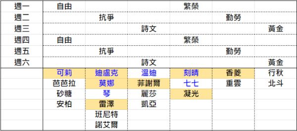 1、天赋解放素材(金底表示主C,蓝字为五星)