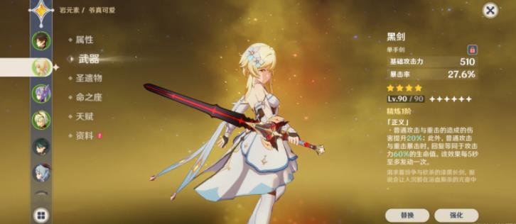 4、荧最需要提升的方面就是暴击率,其次是暴击伤害,然后是攻击力,因此在武器选择方面我们也要优先选择有暴击率的武器,四星的话比较适合的有黑剑以及暗巷闪光,攻击力武器考虑宗室长剑,其次是笛剑,最后是匣里龙吟。