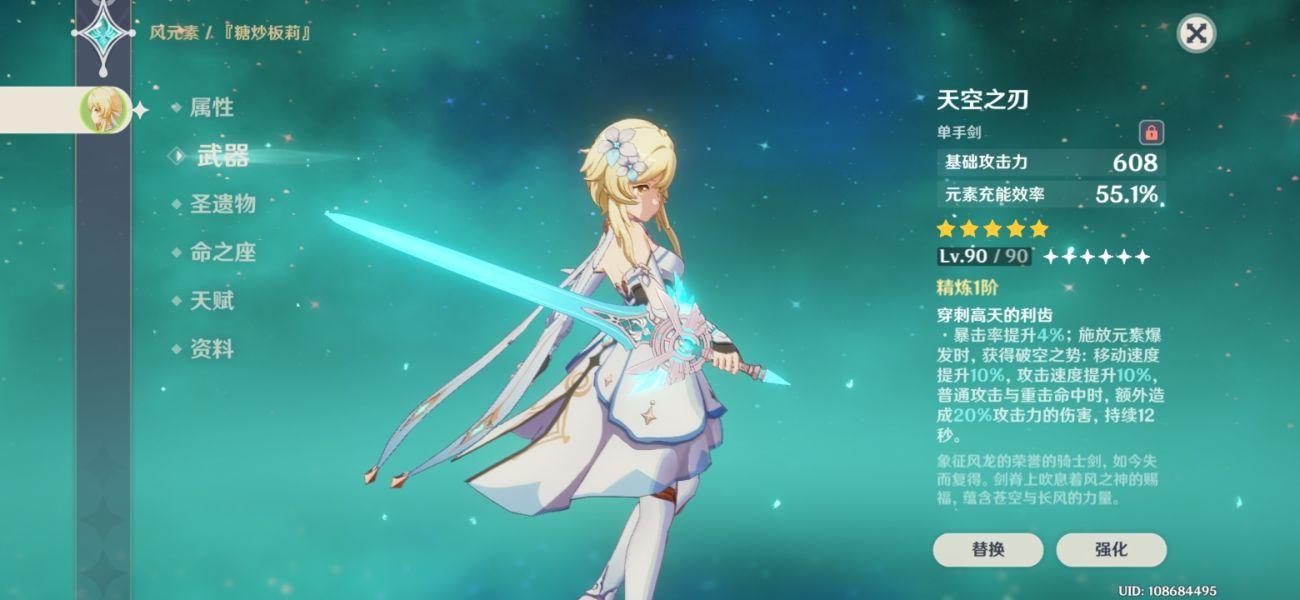 2、对于风主来说,最需要的属性就是充能,因为充能的快慢直接和荧的减抗覆盖率挂钩,因此可选天空之刃、西风剑以及祭礼剑这三种;