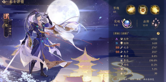 该角色应该是目前游戏里边单体输出最强的一位名士了,不论是boss还是pve或者pvp都是一位超级实用的角色啊。开始的时候该角色是有四成的机会给对方再一次的平A的,比其他的角色都多了一个回合有的可能好几个回合的输出呢,而且被动技能每次攻击的时候都会额外得到一层印记的,放大招的时候就会消耗掉所有的印记,不过每一个印记都是可以多打一次的。所以玩家们若是遇到了其他人用该角色的话,尽量别用自己的肉去硬碰硬。