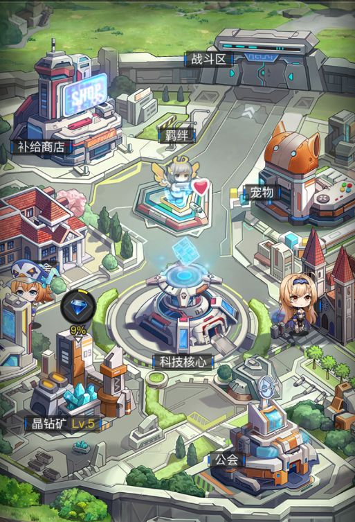战斗区:机械兽入侵,固定时间不抵御,会减少基地收益。抵御完成获得升级宠物的资源