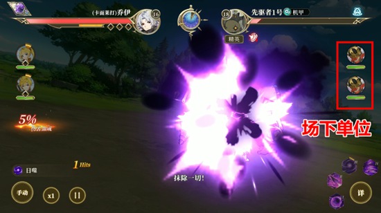 部分英雄技能拥有群体攻击,利用群体攻击我们可以用于击杀场下单位,避免敌方换人后给残血角色加血。