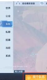 2、在聊天频道中可以看到队伍选项,点击进入队伍。