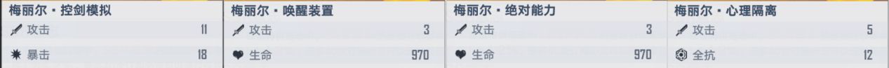 ◇ 意志的基础属性:从测试来看,意志的基础属性每个部位加成的基础属性如下图,而提升属性又分为:攻击,暴击,生命,全抗,这四种,所以意志是非常重要的战力组成部分。