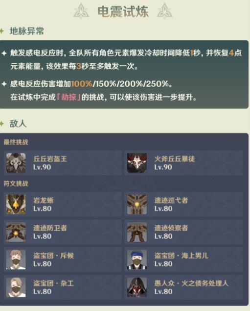 ② 感电反应伤害增加100%/150%/200%/250%。在试炼中完成[劫掠]的挑战,可以使该伤害进一步提升。
