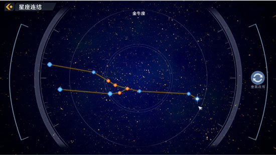 幻塔金牛座的七个点可以连接成三个线段。金牛座位于克罗恩第四区塔顶(501.6,473.9)。金牛座是一款隐藏在幻塔中的智能望远镜解谜游戏。点可以用线连接。当星座图连接正确时,可以获得黑核和一定的经验。