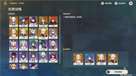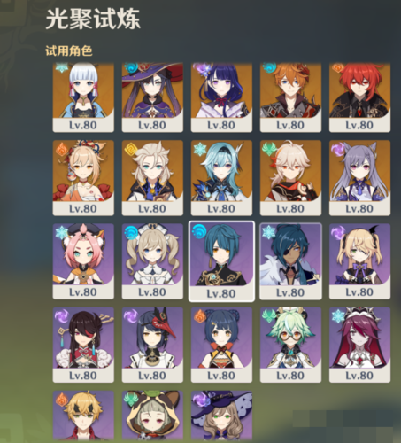光聚试炼角色均为80级四星武器、配套+20圣遗物、8/8/8天赋。按照自己使用习惯即可,勿需其他。
