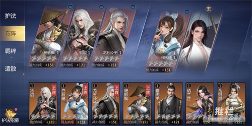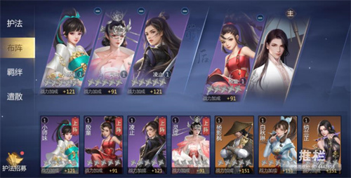 护法主要是通过护主技能给角色提供属性加成,而护主技能会根据护法战力的提升来升级,所以我们在护法的挑选上尽量选择对自身属性加成高,并且可培养的空间更大的护法上阵。