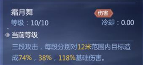 普攻【霜月舞】:在2/3/4技能点满之后再升级。