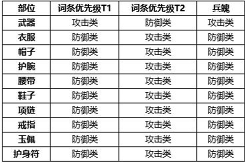 注:攻击类(力量、攻击、灵巧、暴击爆伤、忽抗)防御类(体质、生命、抗性、生命回复、暴击抵抗免伤、反伤)