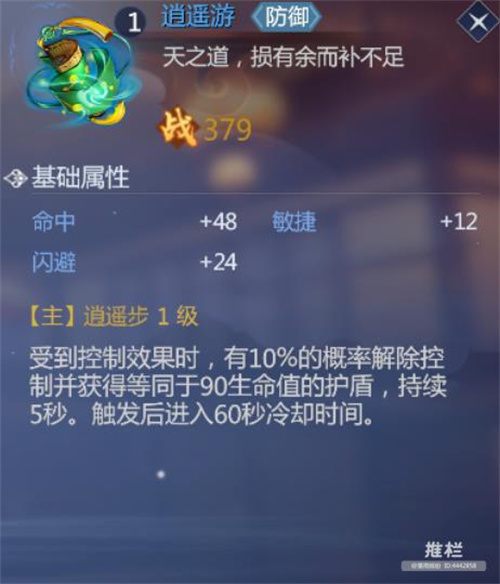 秘籍推荐:主秘籍选择逍遥游,在被控制时有概率解控并且获得一个护盾,团战期间可以更有效的提高生存能力,且该秘籍前期通过活动可以获取,获取难易度较低。