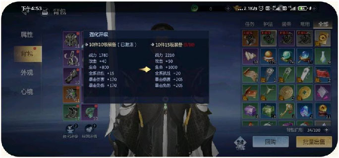 装备强化提升:每件装备平均强化+5+10+15+20+25+30等有组合属性,不要单件装备直接强+35+40.