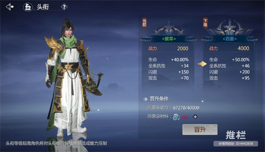 成功晋升获得头衔后,少侠的战力和各项属性将得到全面提升。更为高阶的头衔对于低阶头衔还有压制作用。升级头衔不但可以直接提升战力,还可以直接提升生命、全系抗性、闪避、攻击等属性。另外,当前阶段头衔上限受游戏内时间线控制。