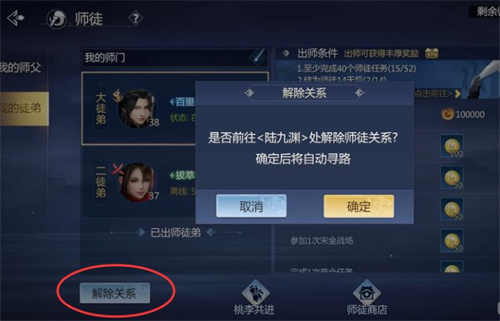 1、前往游戏中师徒NPC申请解除双方的师徒关系;
