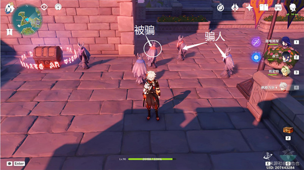 | 谁是真正上当受骗之人 | 红色围巾夜鸦是真正上当受骗之人 (由宝箱侧从左至右第3个) |