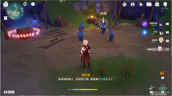 | 谁是那个怠惰之人 | 听完对话之后选择夜鸦,即蓝色围巾的夜鸦 (右上角最靠木箱和番旗) |
