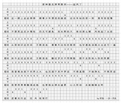 更多原神风物诗琴歌曲,请参考《原神琴谱大全手机版/电脑版(持续更新中...)》
