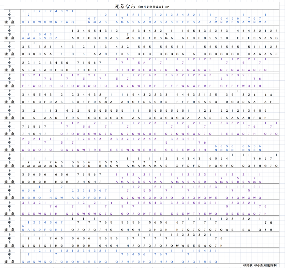 原神琴谱若能绽放光芒,及按键顺序对照
