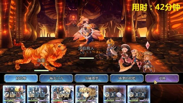 特性:开场开火阵,并召唤一只火精灵,火阵下每回合末根据敌我火属性攻击总次数提升全体力智(1回合,1次为中),锁血75%,25%,每次锁血重开火阵并重新召唤两只火精灵。
