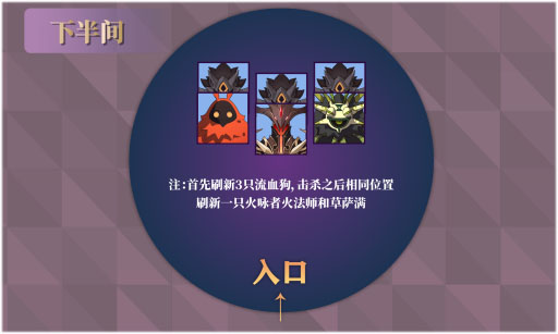(注:首先刷新3只流血狗,击杀之后相同位置刷新一只火咏者火法师和草萨满)