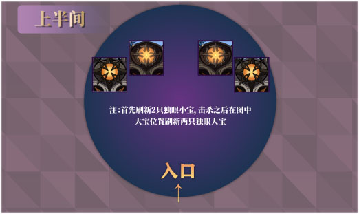 (注:首先刷新2只独眼小宝,击杀之后在图中,大宝位置刷新两只独眼大宝。)