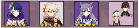 阵容三:雷神+万叶+刻晴+班尼特/钟离