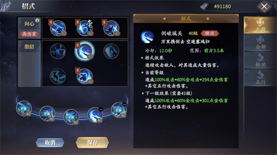 6、开启后进入凌云状态,增加自身30%的攻击力,同时技能【霜寒易水】、【剑斩风云】可触发五行效果。