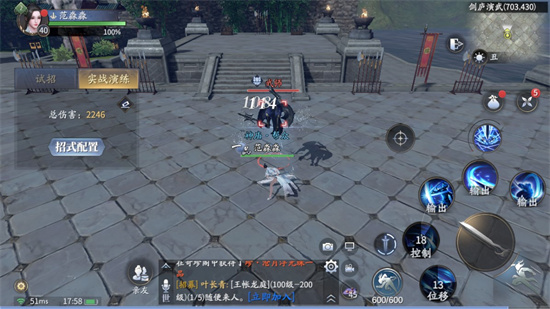 套路里的另外两个技能可以有效的增加【霜寒易水】的命中率,首先【剑影截川】可向前方位移两次,第二次位移可以定身目标1.8秒,而套路内的【横剑分涛】就正好给目标造成减速效果。