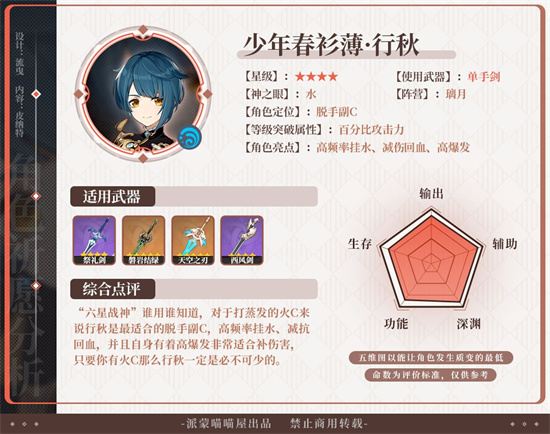 行秋的好处就不需要多说了吧,减抗挂水回血高伤害,只要没有满命就很值得抽满,加上这次的五星一个是钟离一个是甘雨,捞一个绝对不会吃亏的!