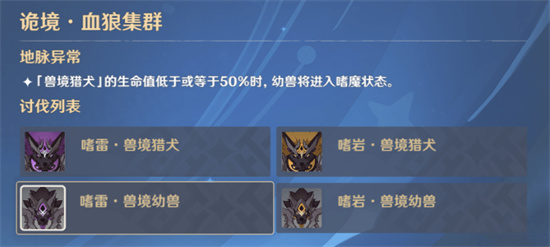 地脉异常:兽境猎犬生命值≤50%,幼兽将进入嗜魔状态。