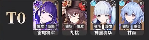 1、【T0】:雷电将军、胡桃、神里绫华、甘雨