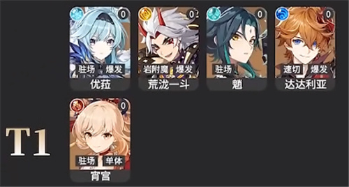 2、【T1】:优菈、荒泷一斗、魈、达达利亚、宵宫、八重神子