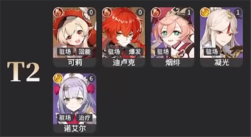 3、【T2】:可莉、迪卢克、烟绯、凝光、诺艾尔