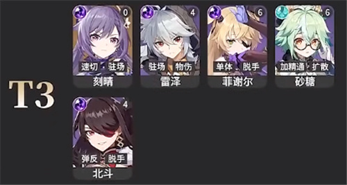 4、【T3】:刻晴、雷泽、菲谢尔、砂糖、北斗