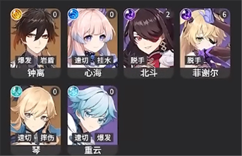 3、【T2】:钟离、心海、北斗、菲谢尔、琴、重云