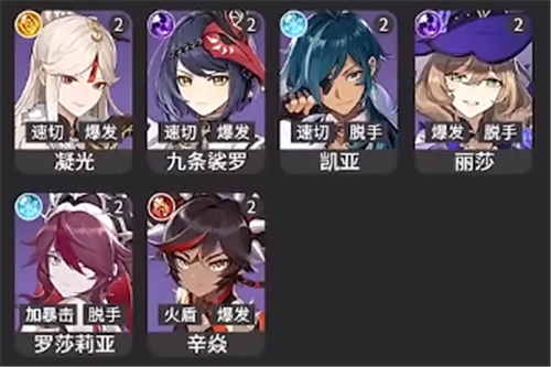 4、【T3】:凝光、九条裟罗、凯亚、丽莎、罗莎莉亚、辛焱