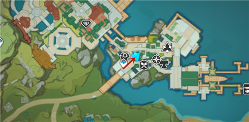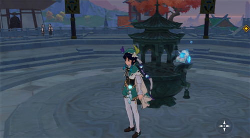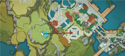 1、首先传送到璃月港的传送锚点这里,往右上方走。