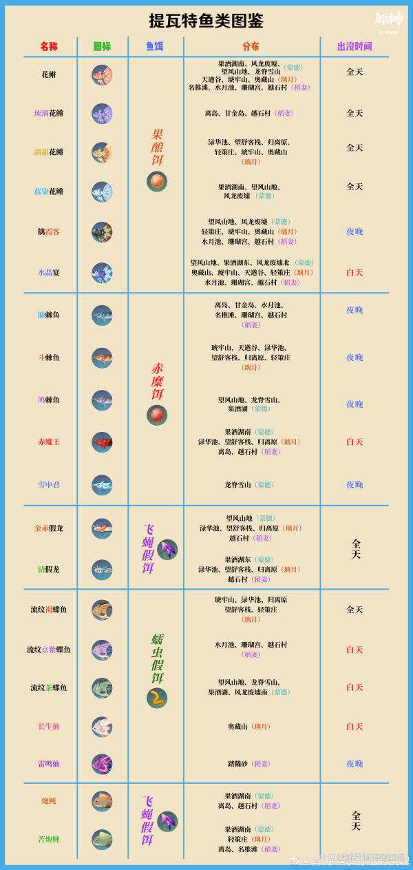 4、提瓦特鱼类刷新时间(正确名称录)