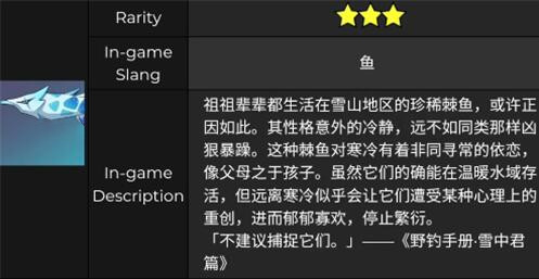「不建议捕捉它们。」——《野钓手册·雪中君篇》