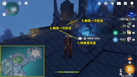 (3)在“常夜”,我们从左下角进入迷宫。触发1~4号位的水元素方碑,即可打开5号位置的天窗,通过迷宫。